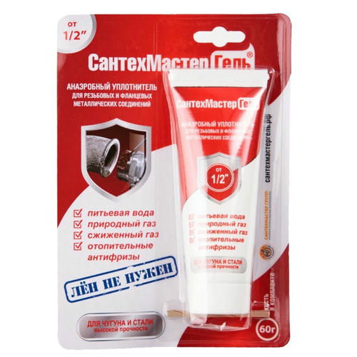 Гель анаэробный Сантехмастер 04026 для резьбовых и фланцевых соединений красный 60 г