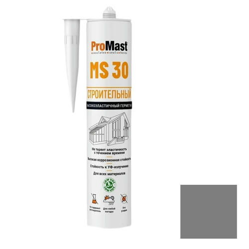 Герметик-клеи_ на основе MS полимера Promast MSP-130 серый 290 мл это экологически чистый однокомпонентный полимерный герметик MS с низким модулем упругости и высокой эластичностью. Предназначен для строительной промышленности. Благодаря своей высокой эластичности является предпочтительным, особенно при сборке швов. Не содержит растворителей и/или изоцианатов.