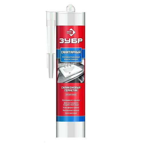 Герметик силиконовый санитарный Зубр 41235-2 прозрачный 280 мл в своем составе не содержит растворителей и является водостойким. Его применяют для работ в помещениях с высокой влажностью, например, в ванных комнатах. Основа герметика — силикон. Незаменим при уплотнении швов. Поставляется в баллоне с удобным носиком для равномерного распределения герметика на поверхностях.
