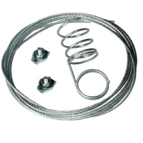 - В комплект входит крюк-пружина, которая вкручивается с тыльной или торцевой стороны панелей, тонкий металлический трос стандартной длины и два зажима, посредством которых осуществляется регулировка по высоте.