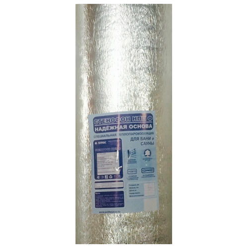 Рулонная отражающая теплоизоляция, состоящая из слоя вспененного полипропилена и алюминиевой фольги. Благодаря свойствам пенополипропилена может использоваться в помещения саун с температурой выше 100°С.