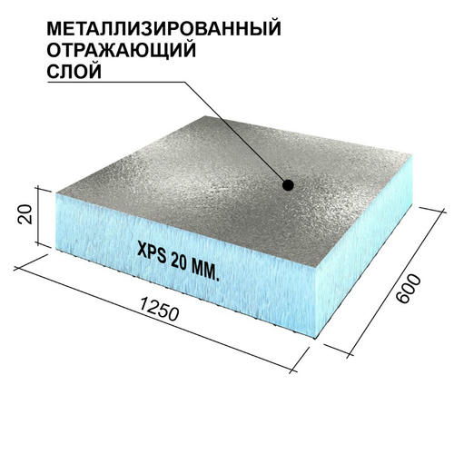 Панель теплоизоляционная Ruspanel RPG Foil 1250х600х20 мм экструдированный полистирол с нанесенным слоем полимерцемента для организации контактной поверхности и готовности под дальнейшую отделку. Благодаря высокому уровню фабричной готовности – материал оптимизирует мокрые процессы, удобен в работе, снижает трудозатраты и повышает качество. Металлизированное покрытие обеспечивает 97% отражения теплового излучения, поэтому объекты защищенные фольгированными панелями прекрасно теплоизолированы и защищены от влаги.