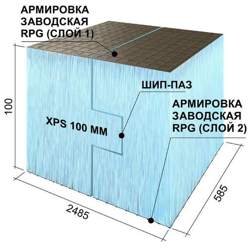 Панель Ruspanel RPG Basic на основе экструдированного пенополистирола H двухсторонняя 2485х585х100 мм