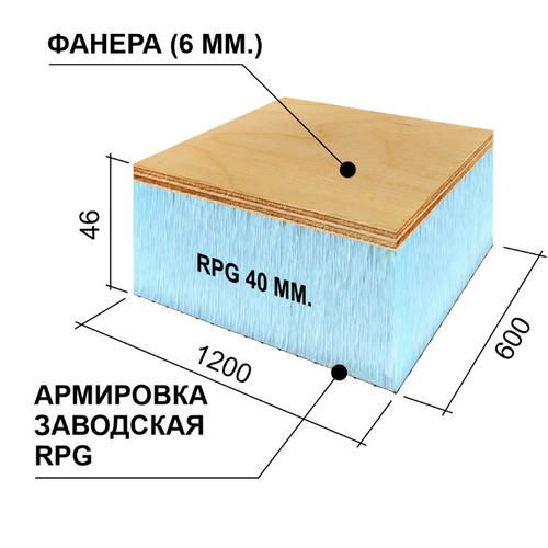 Панель Ruspanel RPG Sandwich фанера+RPG односторонняя 1200х600х46 мм