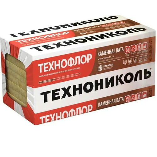 Базальтовая вата Технониколь Технофлор Стандарт 1200x600x100 мм 3 плиты – представляет собой огнестойкие, гидрофобизированные плиты, выполненные на основе базальтовой ваты на низкофенольном связующем. Используется для звуковой и тепловой изоляции помещений в системе плавающих полов.