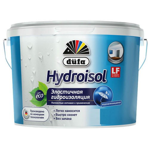 Состав гидроизоляционный эластичный Dufa Hydroisol голубой 3 кг используется для создания гидроизоляционных покрытий стен, полов и потолков внутри зданий во влажных помещениях (душевых кабинах, ванных комнатах, кухнях, чердаках). Подходит для гидроизоляции (герметизации) теплых полов. Является надежной защитой от протечек, сырости и плесени. Рекомендуется в сочетании с высокоэластичными плиточными клеями. Не допускается использование гидроизоляции в местах с постоянной нагрузкой стоячей водой, например, в бассейнах, емкостях для питьевой воды, колодцах. Не предназначено для герметизации фасадов, подвалов или для защиты от грунтовых вод.