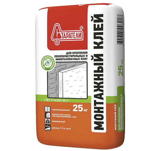 Клей монтажный Старатели для крепления пенополистирольных и минераловатных плит рекомендуется использовать при устройстве систем наружной теплоизоляции фасадов. Соответствует ГОСТ Р 54359 – 2011