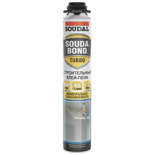 Клей-пена пистолетный Soudal Soundbond Turbo 168513 750 мл – это готовый к применению однокомпонентный полиуретановый клей в аэрозольном баллоне с ускоренным временем первоначального схватывания и превосходной адгезией к большинству строительных материалов. Пистолет гарантирует максимально точное дозирование и высокую производительность продукта.