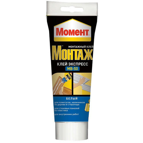 Клей Момент Монтаж Экспресс МВ-50 – это высококачественный универсальный клей, разработанный специально для склеивания широкого спектра конструкций внутри помещения. Надежно склеивает стиропор, дерево, металл, ПВХ, керамика, ДСП, МДФ, гипсокартон, пробку, полистирол, пенопласт, гипс и другие подобные материалы.