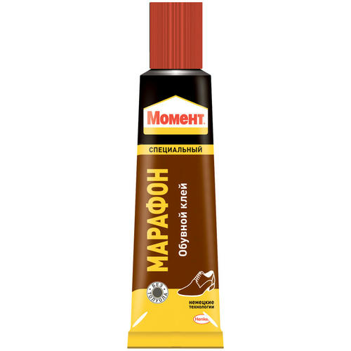 Клей Момент Марафон 30 мл является специальным обувным клеем, отлично подходящим для починки любых видов обуви из различных материалов в любых комбинациях. Клей Момент Марафон склеивает любые сочетания материалов: кожи, кожзаменителя, резины, ткани, войлока, пробки, термоэластопласта, пластика, а также дерева, металла, поливинилхлорида и других материалов. Эластичен и устойчив к внешним воздействиям и агрессивной окружающей среде. Морозостойкий (от -40С до +110С) и водостойкий.