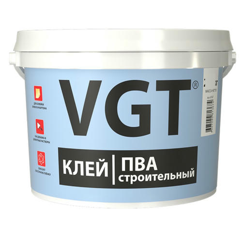Клей ПВА строительный VGT 10 кг для бытовых работ по склейке бумаги, картона, в качестве добавки в цементные растворы при работе с керамической плиткой.