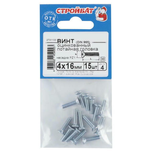 Винт оцинкованный с потайной головкой DIN 965 применяется для соединения деталей в машиностроении, мебельном производстве, приборостроении. Используются в таких отраслях, как строительство, автомобильная промышленность, мебельное производство, приборостроение; также применяются для работы с листовым металлом и профилями из жести.