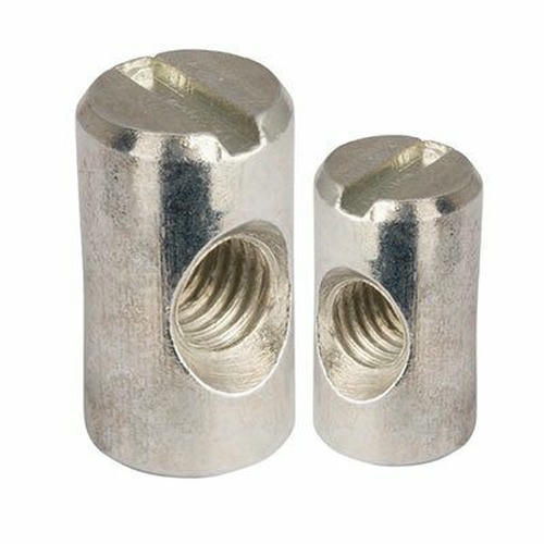 Гайка бочонок широко используется при соединении различных конструкций в мебельном производстве. Внешне деталь напоминает металлический цилиндр со сквозным отверстием круглой формы, на внутреннюю поверхность которой нанесена резьбовая нарезка. С боковой стороны имеется углубление шлиц, выполненное в виде ровной линии под отвертку. Изделие обеспечивает прочное соединение и упрощает процесс сборки различных конструкций.