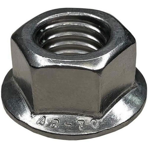 Гайка DIN 6923 шестигранная с фланцем используется для монтажа, соединения, крепления элементов конструкций и оборудования совместно с болтами, шпильками с соответствующим размером метрической резьбы. Фланец-шайба имеет плоскую поверхность, на нижней кромке которой нанесены зубцы. Они расположены по ходу закручивания гайки и за счет силы трения предотвращают самораскручивание соединения в узле во время эксплуатации.