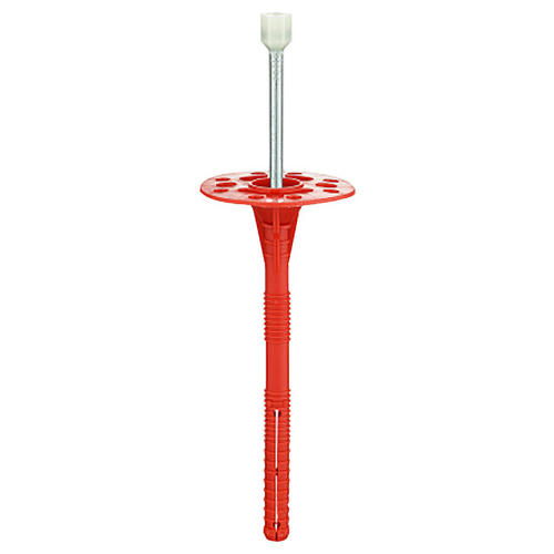 Применяется для крепления теплоизоляционных материалов к бетону, полнотелому и пустотелому кирпичу, камню, пенобетону. Представлен в виде дюбеля с двухсегментной распорной частью из ударопрочного полипропилена с увеличенной прижимной шайбой диаметром 60 мм и металлическим оцинкованным гвоздем с потайной головкой. Используется при монтаже тяжелых видов утеплителя или утеплителя (толщиной до 240 мм). Шляпка дюбеля способствует надежному удержанию материала теплоизоляции, препятствуя прорыву в месте крепления. Установка производится методом сквозного монтажа. В среднем на 1 кв. м. теплоизоляции требуется 5-6 дюбелей.