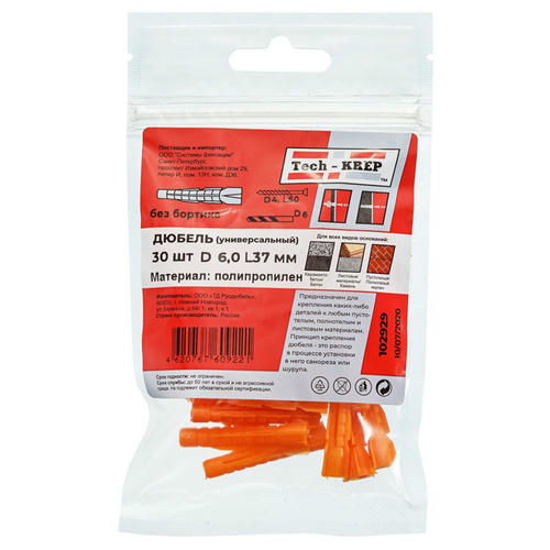 Применяется для крепления различных деталей и изделий к полнотелым, пустотелым и листовым материалам-основаниям. Дюбель используется совместно с универсальными шурупами, сантехническими болтами, шпилькой-шурупом и т.д. Не рекомендуется применять его с черными саморезами. Устанавливается в предварительно просверленное отверстие.
