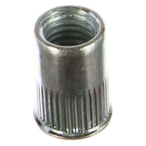 Заклепка резьбовая Messer 212110S-50 цилиндрическая с насечкой (рифленые) с уменьшенным бортиком применяется в основном при необходимости выполнения прочной резьбы в листовом металле, когда нарезание резьбы невозможно. Резьбовая заклепка имеет внутреннюю резьбу для крепления винтов. Заклепка цилиндрической формы применяется для установки в круглое отверстие. Уменьшенный борт обеспечивает более надежное крепление, благодаря специальной установке заклепки с таким бортиком. Насечка наносится с целью предотвратить прокручивание крепежного узла.