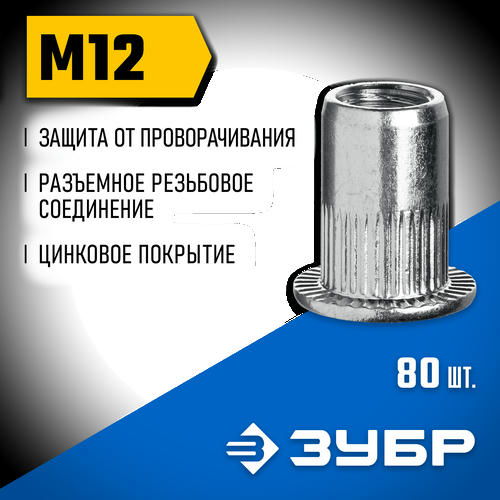 ЗУБР М12, станд. бортик, 80 шт, стальные резьбовые заклепки с насечками, Профессионал