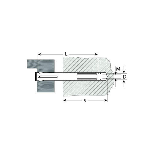 Для крепления оконных рам и дверных коробок к полнотелым основаниям: поверхностям из бетона, полнотелого кирпича или природного камня. Анкер устанавливается в предварительно просверленное и очищенное от буровой муки отверстие диаметром 10мм, расклинивание происходит при закручивании винта. Минимальная глубина сверления (е) – 50мм. Для установки анкера требуется бита PZ3.