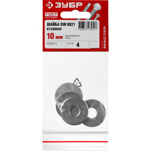 ЗУБР 10 мм, 4 шт., шайба кузовная DIN 9021