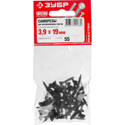 ЗУБР 19 х 3.9 мм, 55 шт., СГВЛ саморезы для гипсоволоконных листов Мастер