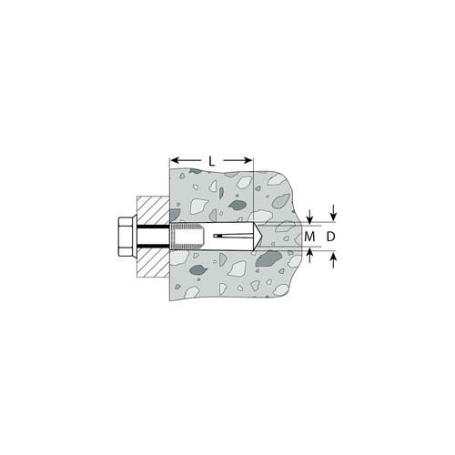 - Фиксация анкера в основании достигается путем вкручивания болта. При этом происходит расклинивание, и анкер удерживается в основании за счет сил трения.
