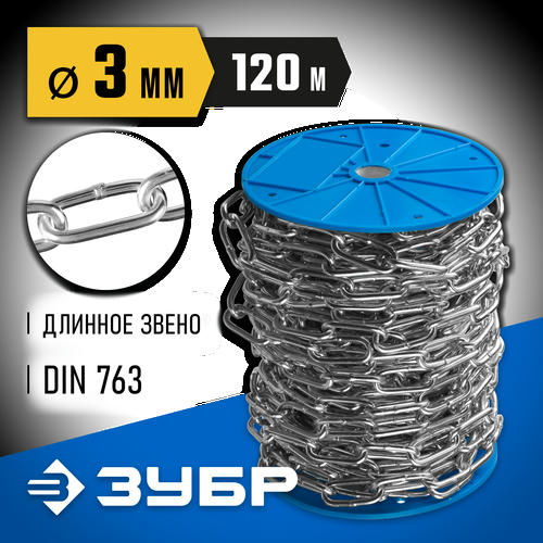 ЗУБР 3 мм, 120 м, цепь длиннозвенная, DIN 763 Профессионал