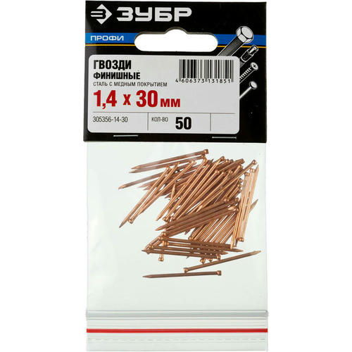 ЗУБР 30 х 1,4 мм, 50 шт., гвозди финишные омедненные Профессионал