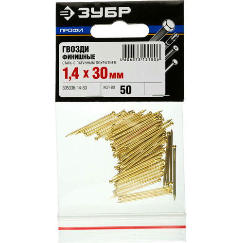 ЗУБР 30 х 1,4 мм, 50 шт., гвозди финишные с латунным покрытием Профессионал