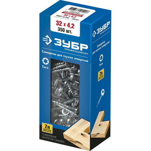 ЗУБР 32 х 4.2 мм, 350 шт, редкая резьба, саморезы для глухих отверстий Профессионал