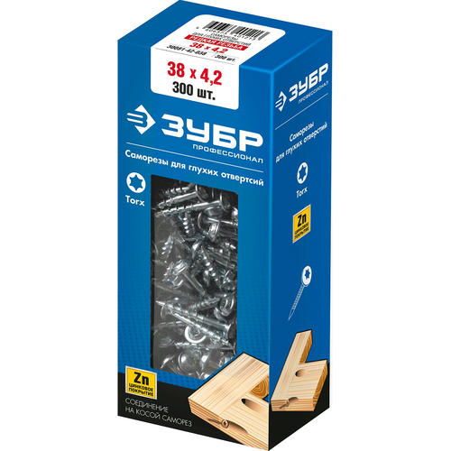 ЗУБР 38 х 4.2 мм, 300 шт, редкая резьба, саморезы для глухих отверстий Профессионал