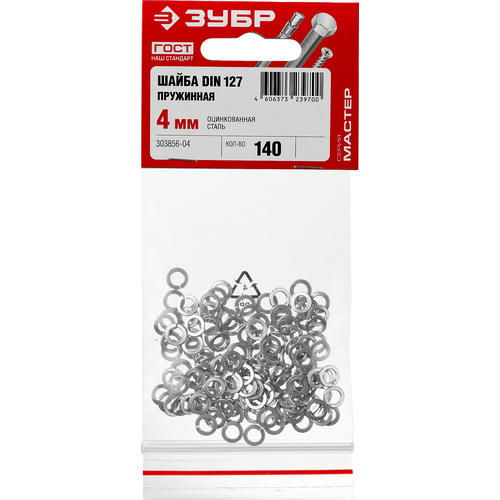 ЗУБР 4 мм, 140 шт., шайба пружинная DIN 127
