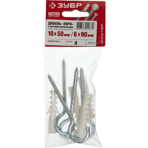 ЗУБР 50 x 10 мм, 4 шт., дюбели распорные в комплекте с шурупом-полукольцом ЕВРО