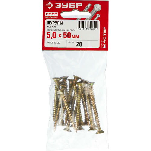 ЗУБР 50 x 5.0 мм, 20 шт., желтый цинк, СУ-Ж саморезы универсальные по дереву Мастер