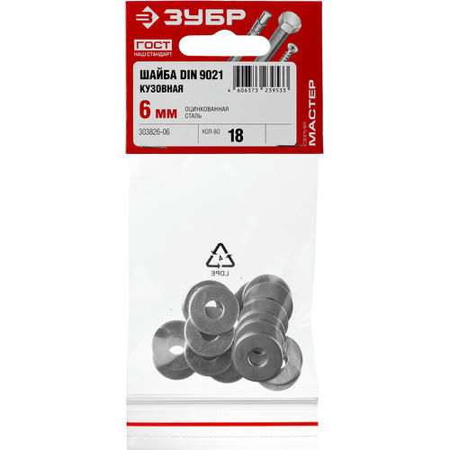 ЗУБР 6 мм, 18 шт., шайба кузовная DIN 9021