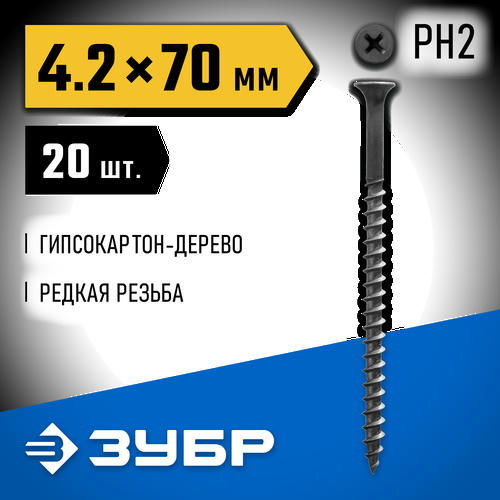 ЗУБР 70 x 4.2 мм, 20 шт., СГД саморезы гипсокартон-дерево Профессионал