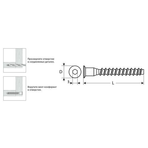 Винт-конфирмат представляет собой особый вид шурупа с потайной головкой и тупым наконечником. Широко применяется в мебельном производстве.