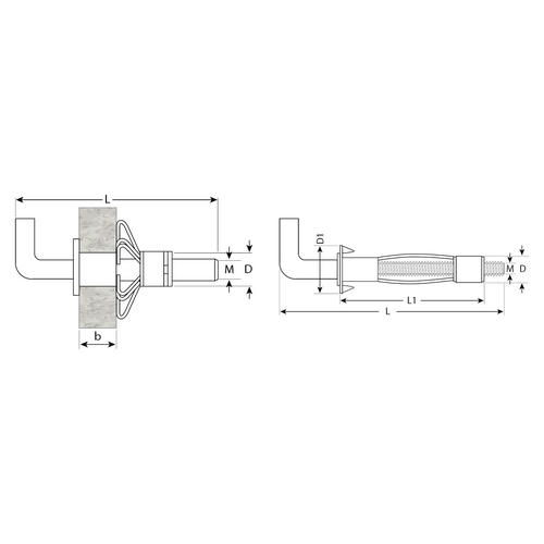 Анкеры _МОЛЛИ_ изготовлены из высококачественной стали. Обеспечивают более высокие вырывные нагрузки по сравнению с дюбелями. Конструкция анкера позволяет надежно крепить различные элементы конструкций и предметы интерьера к пустотелым основаниям. Использование специального заклепочника существенно облегчает процесс монтажа анкера.