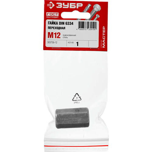 ЗУБР DIN 6334 переходная, M12, 1 шт, оцинкованная гайка