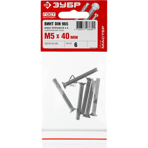 ЗУБР M5 x 40 мм, 6 шт., потайная головка, винт DIN 965