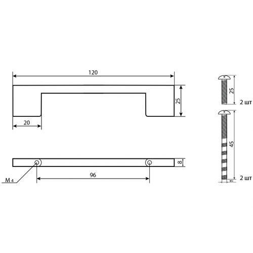 Ручка мебельная Palladium, Ritiro, 96 мм, матовый никель – мебельная ручка-скоба из металла в цвете «матовый никель» с межвинтовым расстоянием 96 мм.