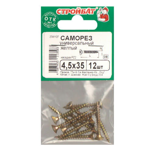 Саморезы универсальные желтые ШУж 4,5х35мм, потайная голова, 12шт