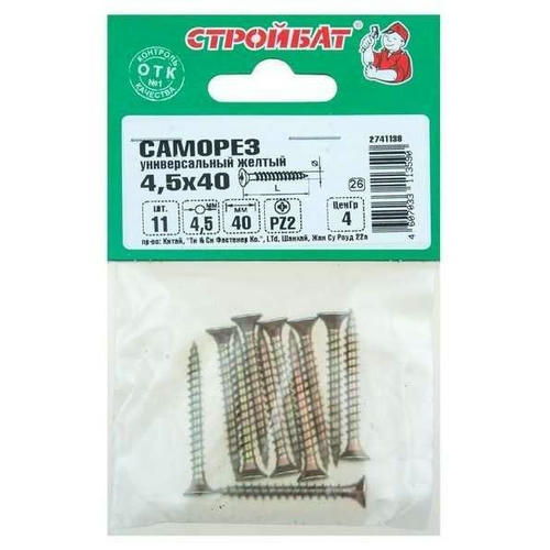 Саморезы универсальные желтые ШУж 4,5х40мм, потайная голова, 11шт