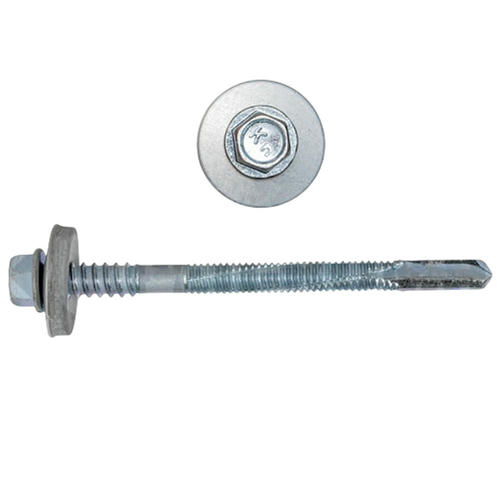 Все саморезы для крепления сэндвич-панелей оснащены шестигранными головками, совместимыми со стандартными кровельными насадками размером 8 мм. Для герметизации отверстия в наружном металлическом листе панели используются широкие стальные шайбы и уплотнительные прокладки из EPDM-резины. При затягивании шайба плотно прижимает резиновое кольцо к панели, что полностью исключает возможность проникновения воды и влаги внутрь.