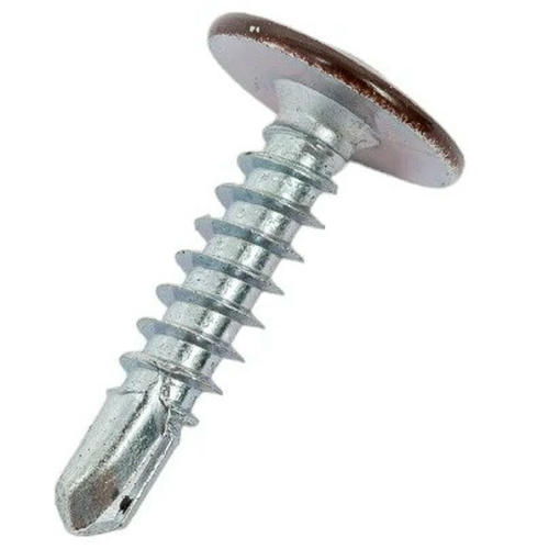 В состав метиза входят окрашенная прессшайба, прижимающая фиксируемые детали, и резьбовой стержень со сверлом на конце. Сверло упрощает работу с плотными материалами, исключает предварительную подготовку отверстий.