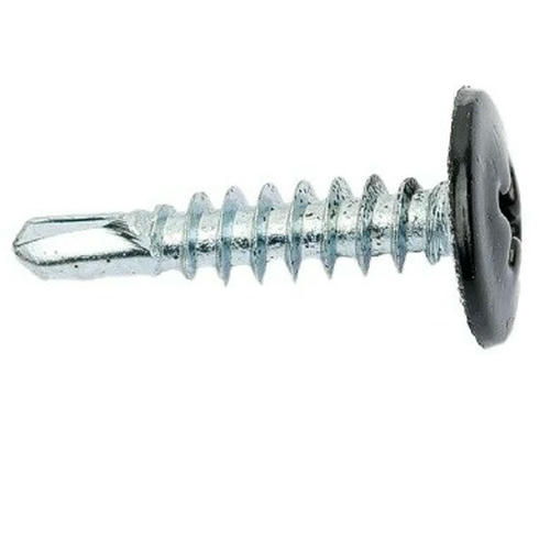 В состав метиза входят окрашенная прессшайба, прижимающая фиксируемые детали, и резьбовой стержень со сверлом на конце. Сверло упрощает работу с плотными материалами, исключает предварительную подготовку отверстий.