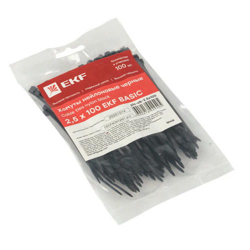 Хомут кабельный EKF plc-cb-2.5×100 2.5х100 мм черный 100 шт