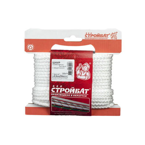 Шнур вязаный полипропиленовый с серд. белый, 6 мм, L20 м, Россия// Сибртех