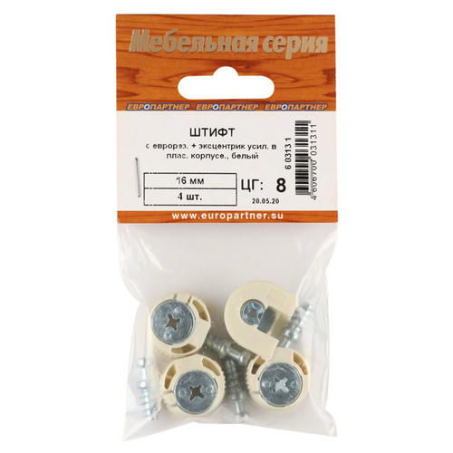 Штифт с еврорезьбой и усиленным эксцентриком 16мм коричневый 4шт