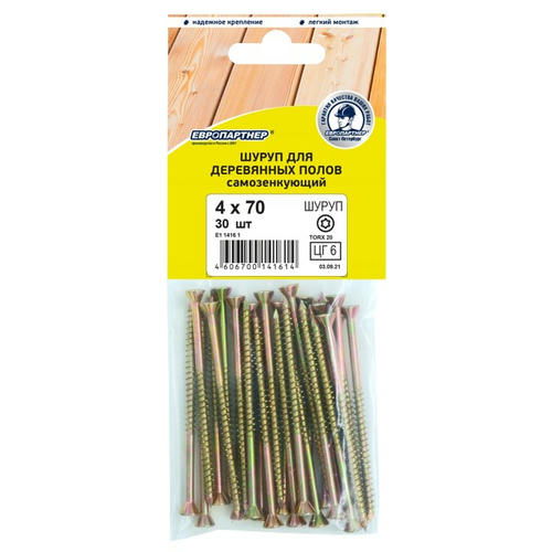 Шуруп для пола предназначен для крепления деревянных полов, половых и деревянных реек к деревянной основе. Уникальная геометрия резьбы обеспечивает быстрое, надежное и легкое ввинчивание. Для внутренних работ. Шлиц TORX – надежная фиксация рабочего инструмента. Небольшая самозенкующаяся головка легко утапливается в древесине и создает аккуратный внешний вид. Фрезерующие ребра обеспечивают плотное прилегание прикрепляемого материала. Геометрия резьбы гарантирует легкий и быстрый монтаж. Наконечник с буром не требует предварительного сверления и предотвращает расщепление древесины. Материал – закаленная сталь, экологически безопасное покрытие трехвалентный хром.